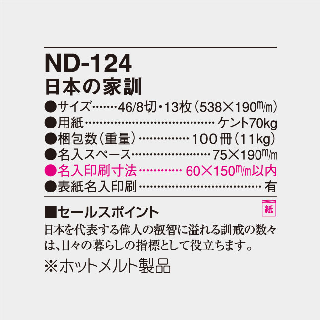 【ND-124 日本の家訓】格言カレンダー —— 先人の知恵を日々の糧に