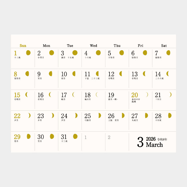 そして「月」といえば、昔から俳句や和歌、物語に登場するなど、人々の心を映す存在でした。月の満ち欠けは暦としても用いられ、私たちの生活と密接に結びついています。そんな月を、もっと身近に楽しめるのが「月をテーマにしたカレンダー」です。