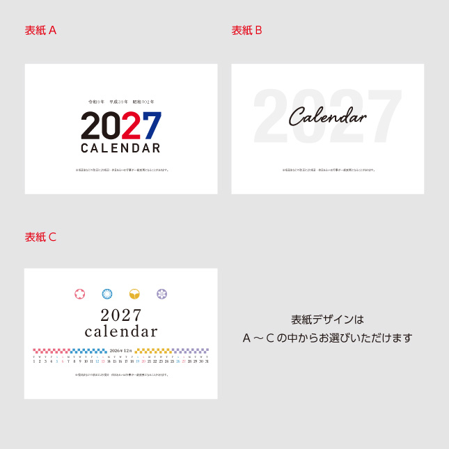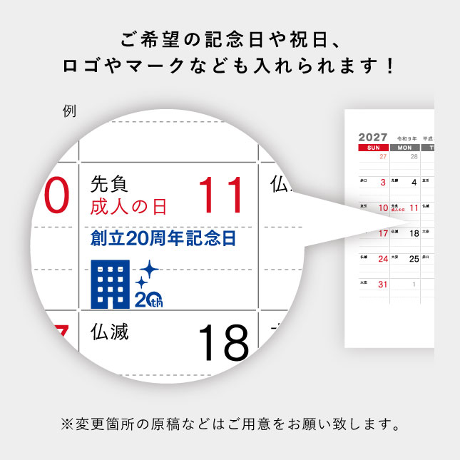 掲載価格は基本色1色です。「名入れ印刷色について」ページをご確認ください。壁掛けの2色以上のカラー刷り・価格表にない冊数についてはお見積をご依頼ください。 |