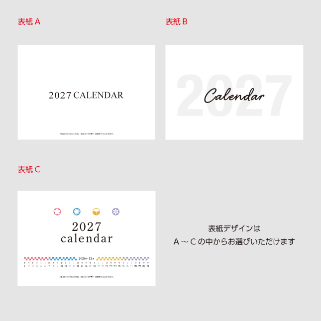 掲載価格は基本色1色です。「名入れ印刷色について」ページをご確認ください。壁掛けの2色以上のカラー刷り・価格表にない冊数についてはお見積をご依頼ください。 |
