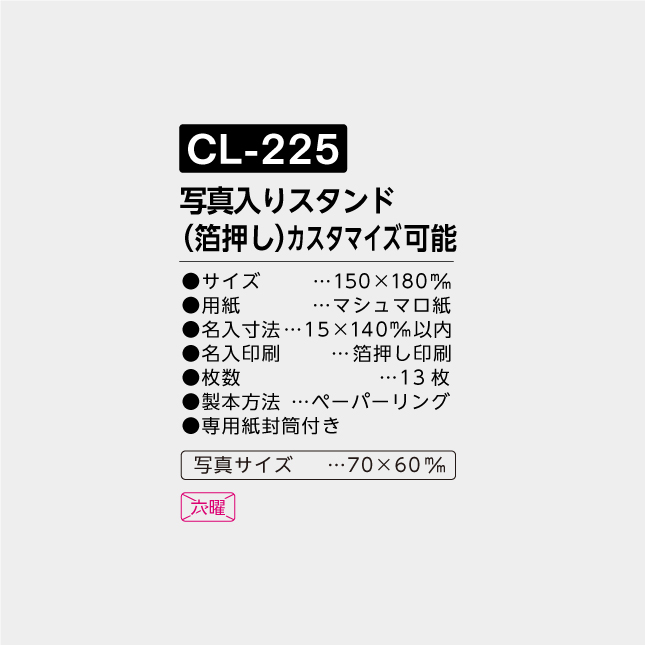 CL-225 卓上名入れカレンダー 写真入りスタンド(箔押し)カスタマイズ可能
