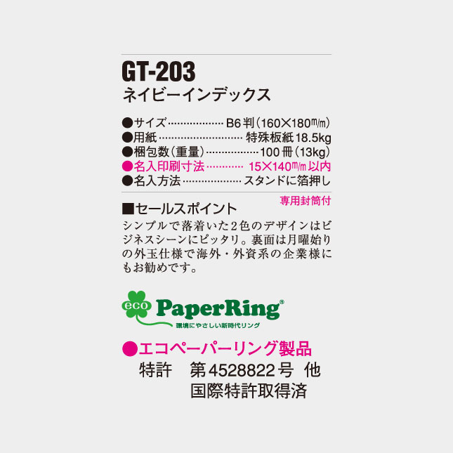 GT-203 卓上名入れカレンダー ネイビーインデックス