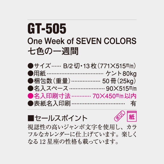 GT-505 One Week of SEVEN COLORS 七色の一週間