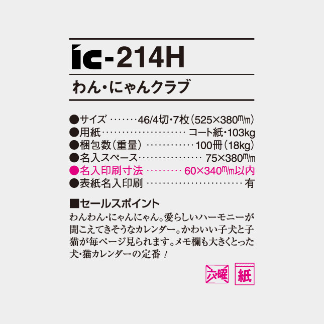 IC-214H わん・にゃんクラブ 名入れカレンダー