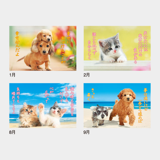 ペットカレンダーは名入れカレンダーの中でも多くの商品がありますが、写真と文字の組み合わせで人気なのがこの商品です。
