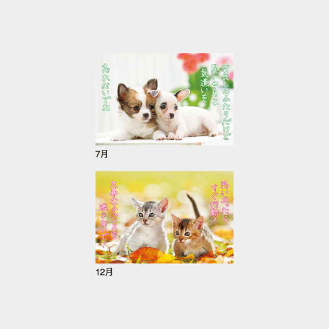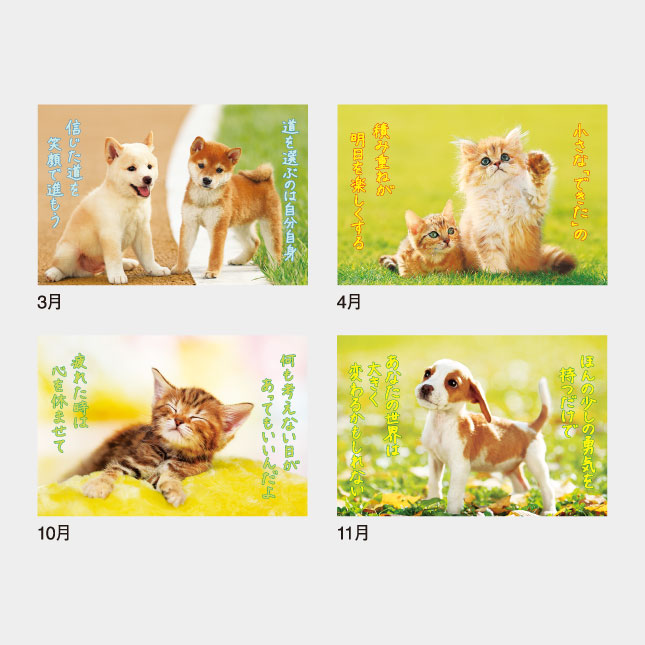 かわいくてやんちゃな子犬と子猫が、心あたたまるメッセージをあなたに届けてくれます。