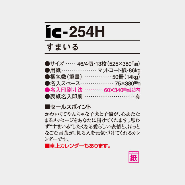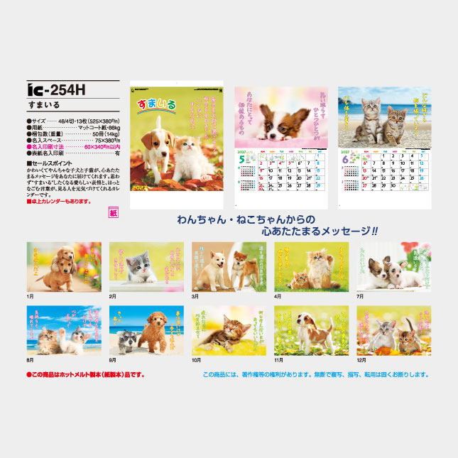 IC-254H すまいるのおすすめポイントは、可愛いわんちゃん猫ちゃんの写真だけではなく、優しい手書き文字の内容が、写真とぴったりマッチしているところです。