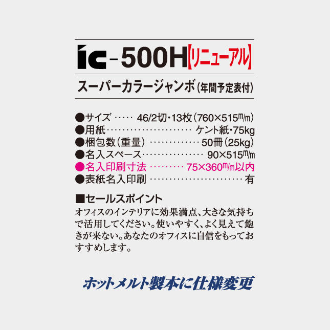 IC-500H スーパーカラージャンボ(年間予定表付)