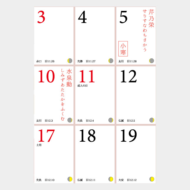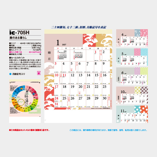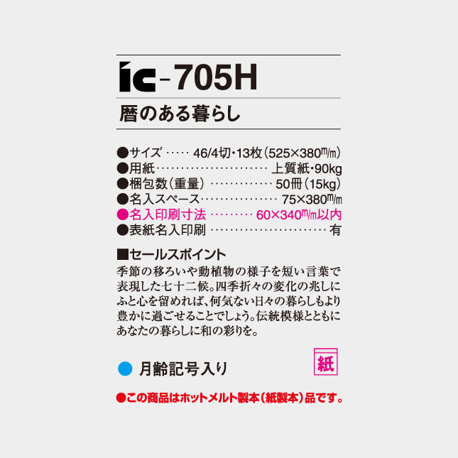 IC-705H 暦のある暮らし 二十四節気 七十二候とともに 文字月表 名入れカレンダー