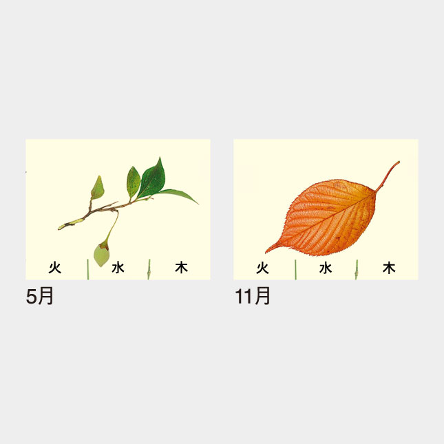 毎月様々なリーフ(葉)がゆとりと安らぎを与えてくれます。広いメモスペースは罫線も入っており、実用的です。