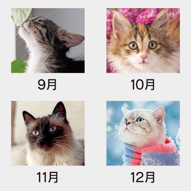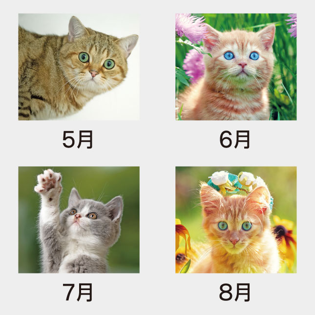 猫好きにはたまらないあいくるしい表情がいっぱいですのカレンダー。