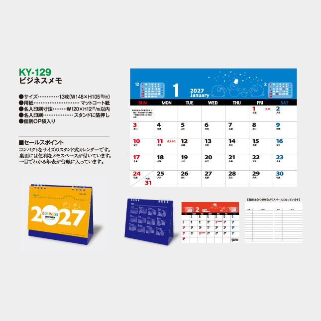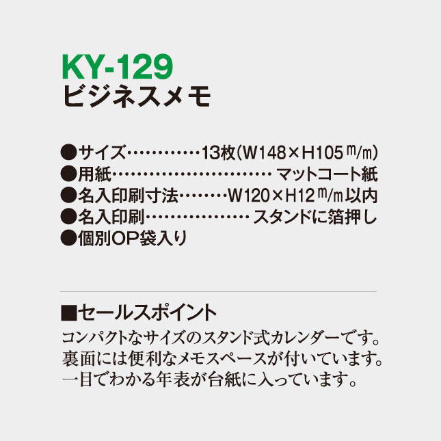 KY-129 卓上名入れカレンダー ビジネスメモ
