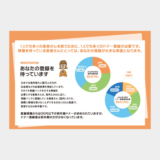 裏面には骨髄バンクについての啓発活動を掲載しています。