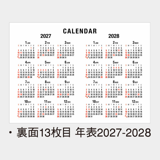 掲載価格は基本色1色です。「名入れ印刷色について」ページをご確認ください。壁掛けの2色以上のカラー刷り・価格表にない冊数についてはお見積をご依頼ください。 |