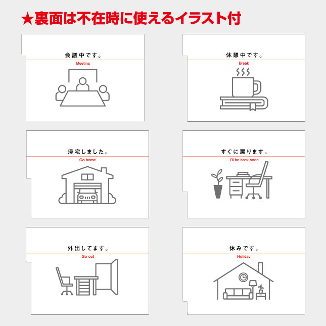 十分なメモスペースとシンプルなデザインで裏面は不在時に使えるイラスト付きです。