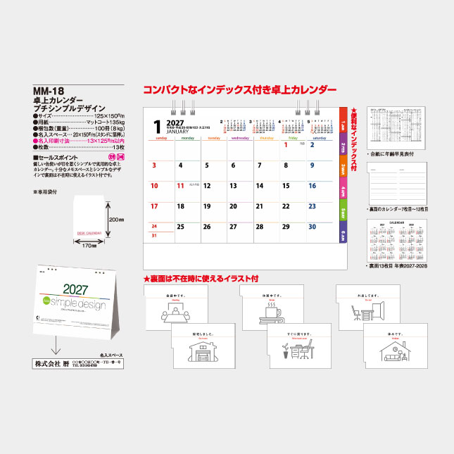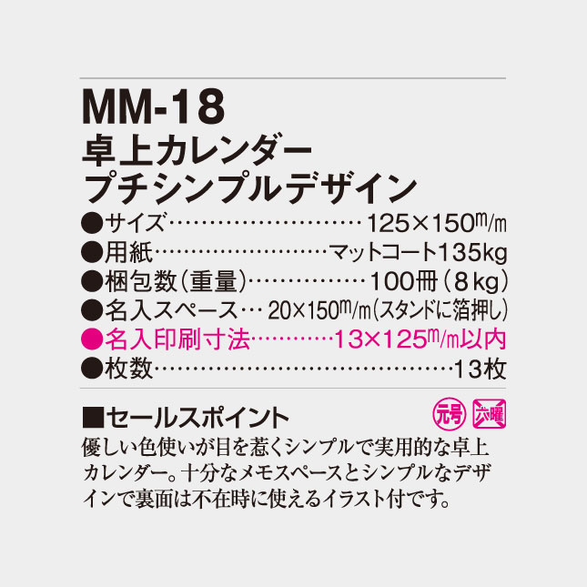 MM-18 卓上名入れカレンダー プチシンプルデザイン