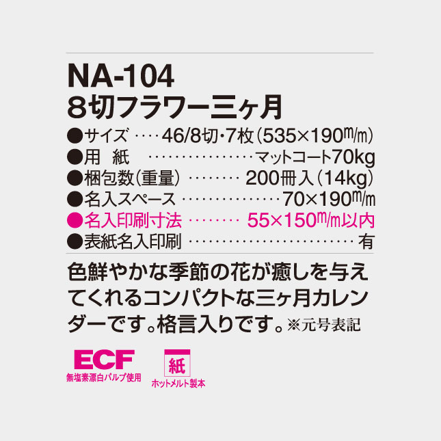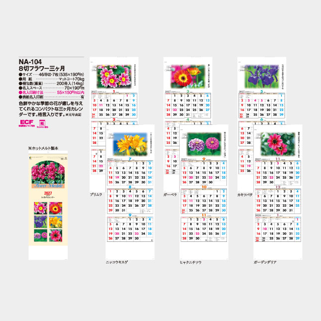 NA-104 8切フラワー三か月 3か月名入れカレンダー