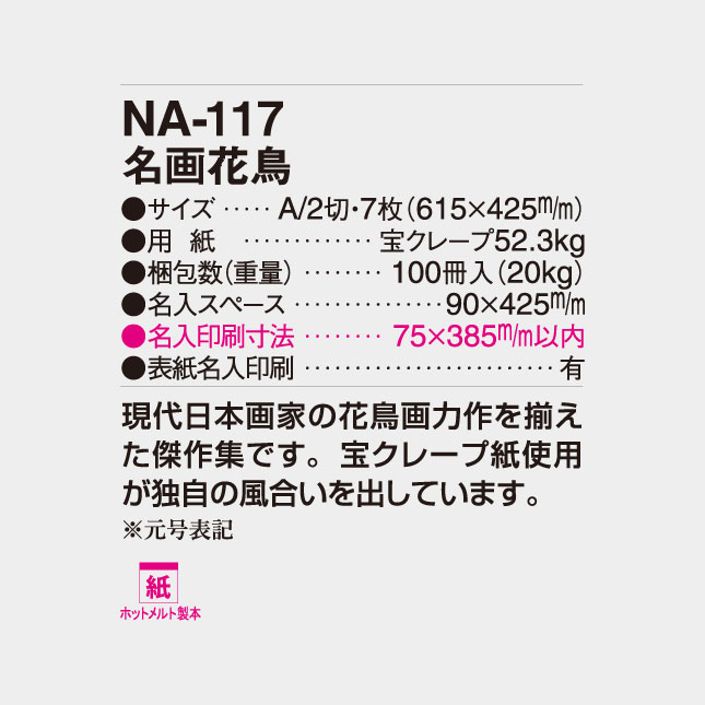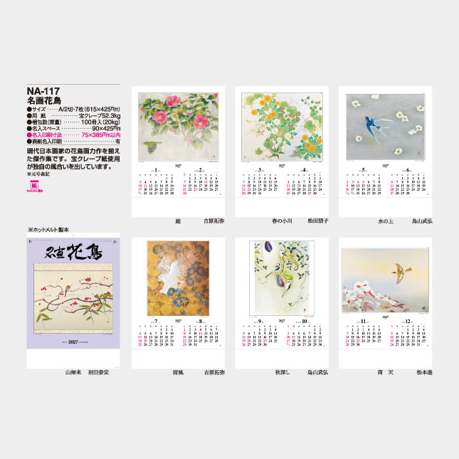 NA-117 名画花鳥 壁掛け名入れカレンダー