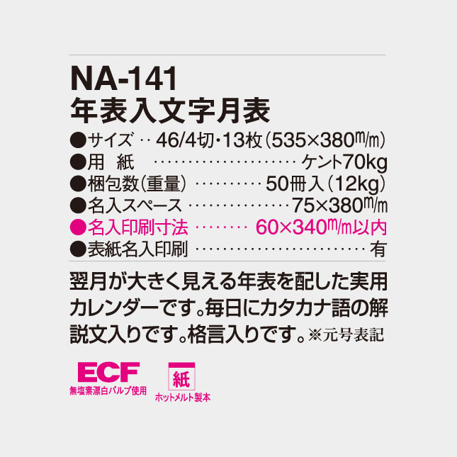 | 商品名 | 年表入文字月表 |