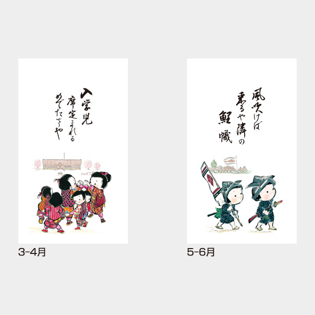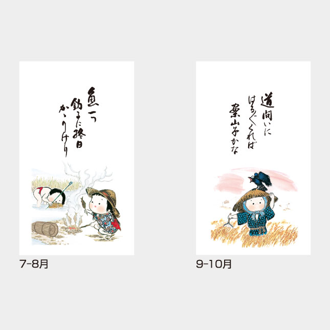 四季それぞれの愛らしくほのぼのとした子どもたちと、季節を詠んだ俳句。誰もが幸せな気分になれるそんな作品です。場所をとらないコンパクトな一品です。