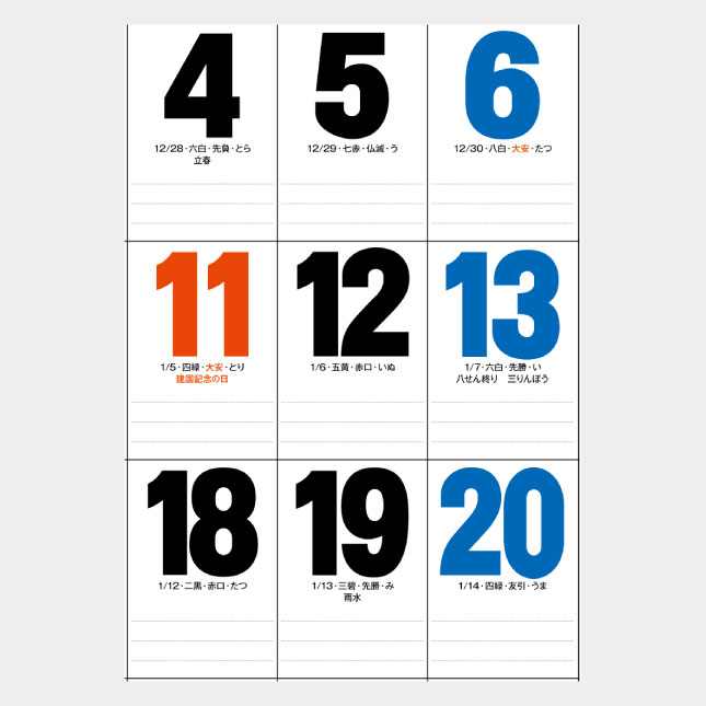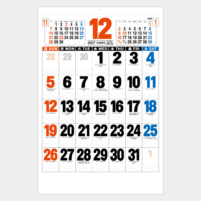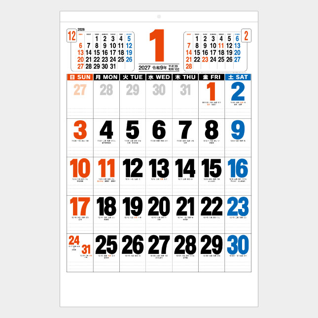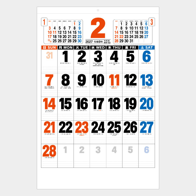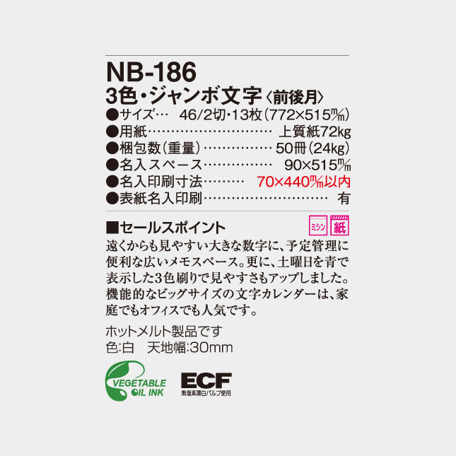 NB-186 3色・ジャンボ文字(前後月)名入れカレンダー