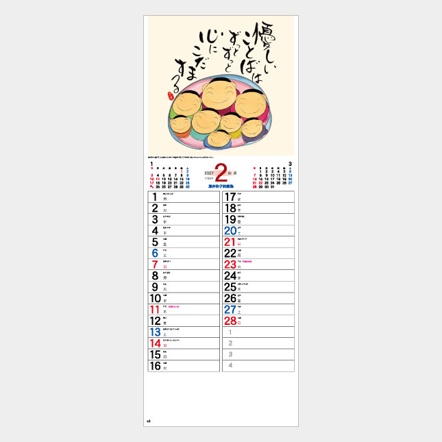 掲載価格は基本色1色です。「名入れ印刷色について」ページをご確認ください。壁掛けの2色以上のカラー刷り・価格表にない冊数についてはお見積をご依頼ください。 |
