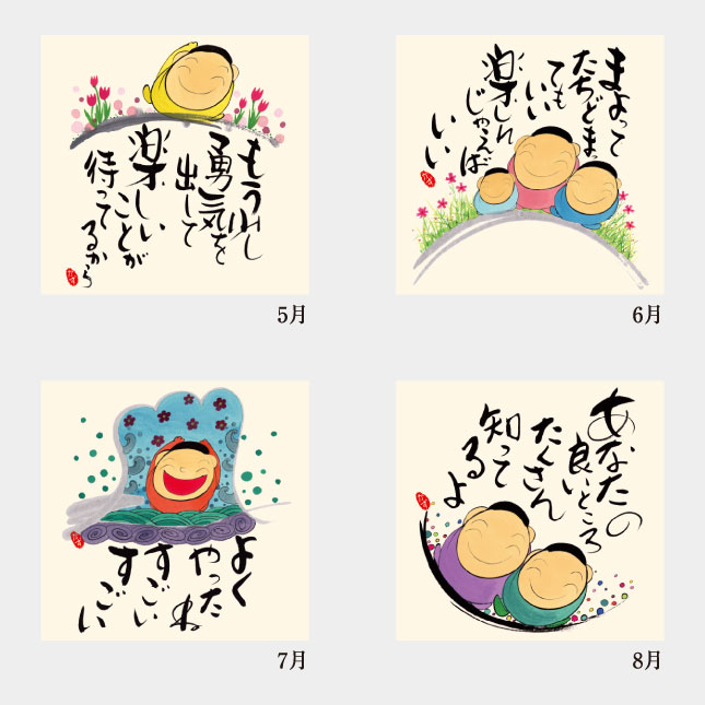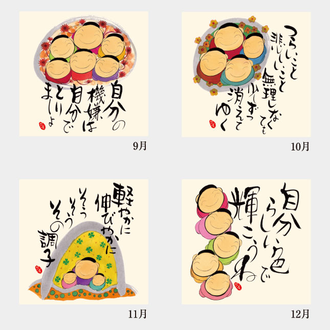 何時も、裸の素直な気持ちで、何処までも、真直ぐにわくわくできる瞬間を大事にしていたい。そして、与えられた毎日を大切に生きて行きたいと思う気持を込めて。深井和子氏の詩画集カレンダー。
