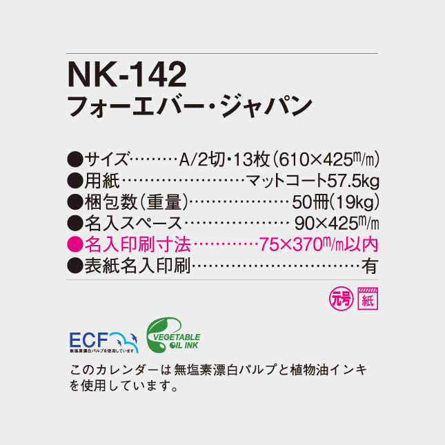 NK-142 フォーエバー・ジャパン(MM-224) 壁掛け名入れカレンダー