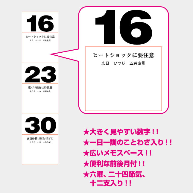 大きく見やすい数字!!一日一訓のことわざ入り!!