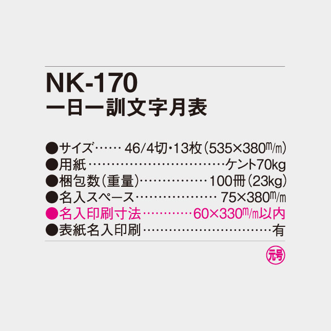 | 商品名 | NK-170 一日一訓文字月表(MM-211) |
