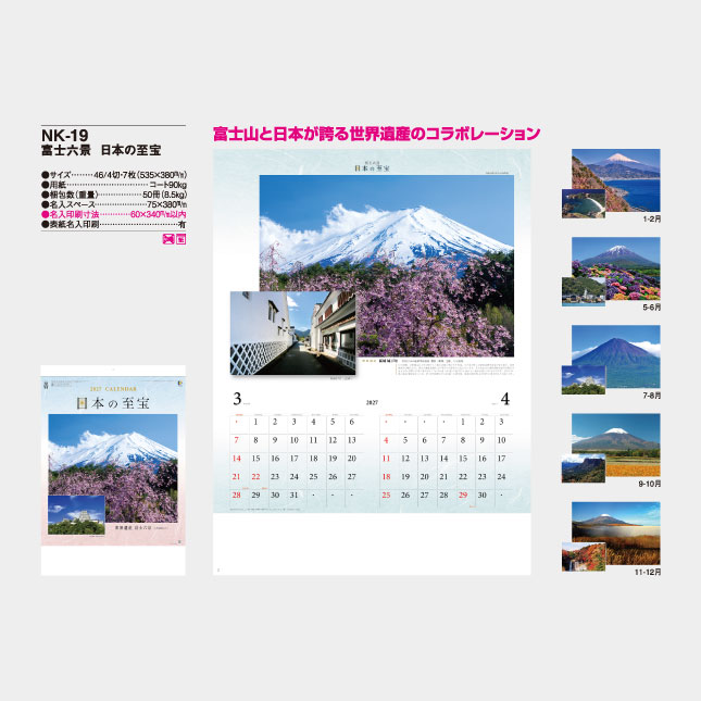 ※このカレンダーは『NP-801;YG-28 富士六景 日本の至宝』と同じ商品です。