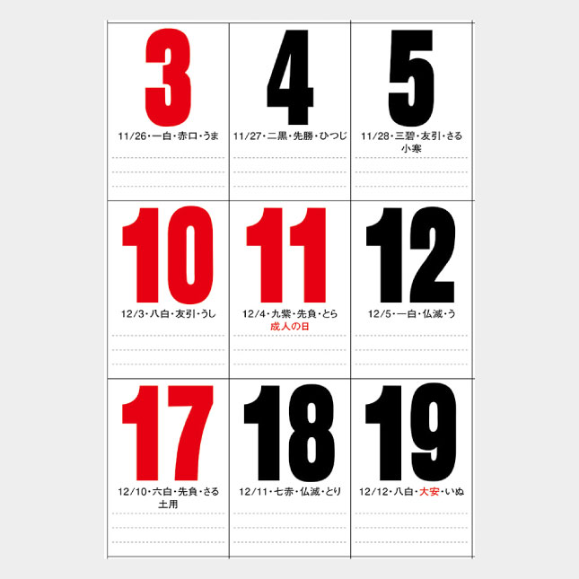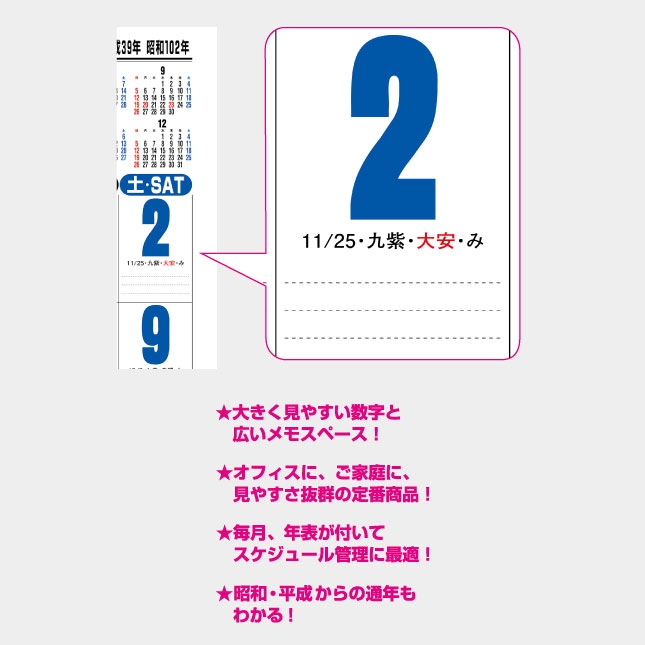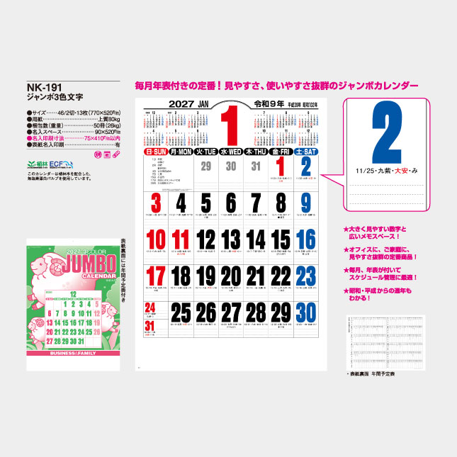 NK-191 ジャンボ3色文字 文字月表 名入れカレンダーの特徴