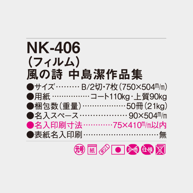 NK-406 フィルム名入れカレンダー 風の詩 中島潔作品集