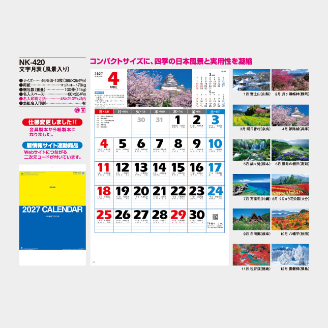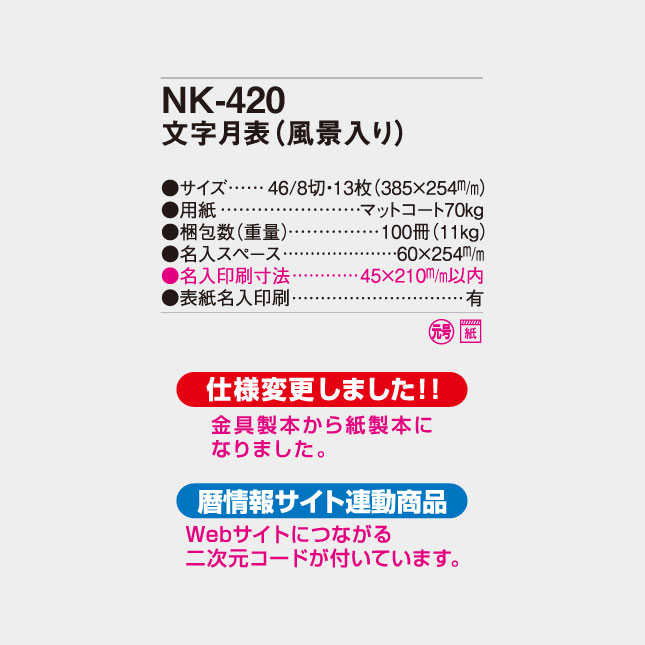 NK-420 文字月表(風景入り) 壁掛け名入れカレンダー