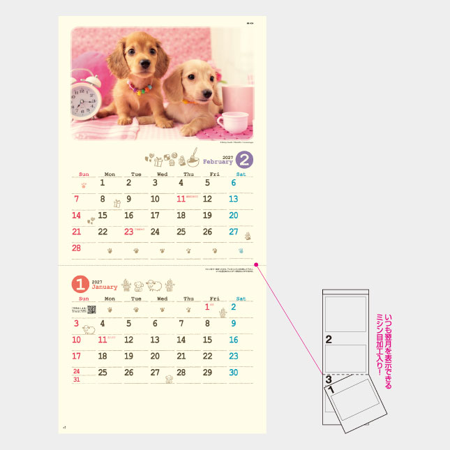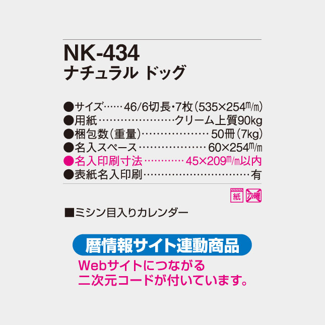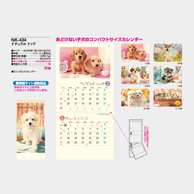 NK-434 ナチュラル ドッグ 壁掛け名入れカレンダー