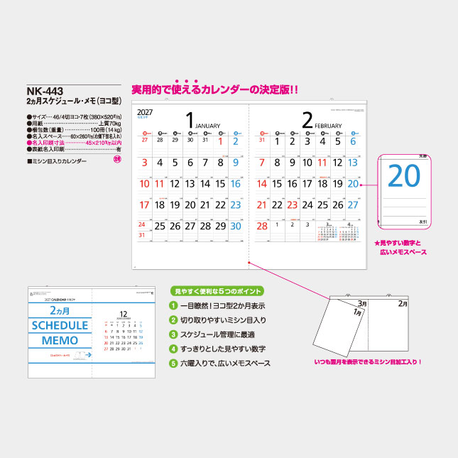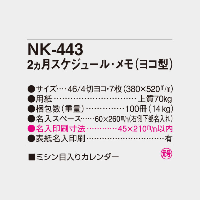 NK-443 2カ月スケジュール・メモ(ヨコ型)(MM-225)