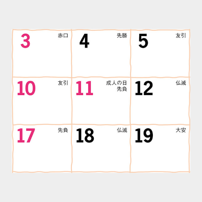 メモ欄、六曜もついて実用性も抜群のカレンダーです。