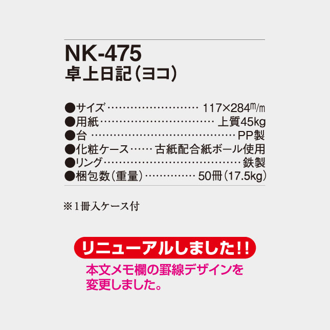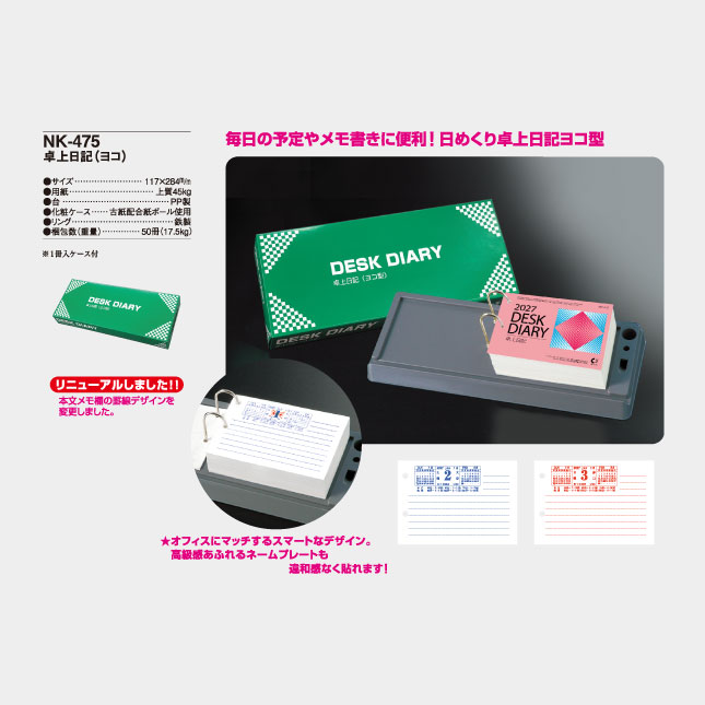 NK-475 卓上名入れカレンダー 日記(ヨコ)