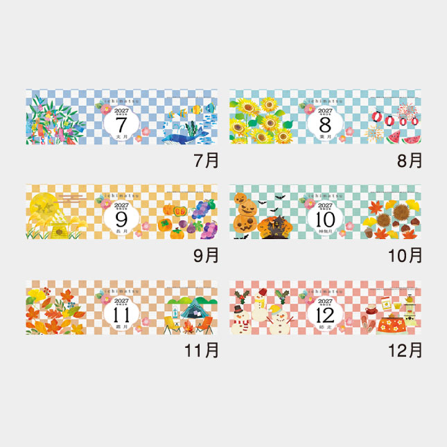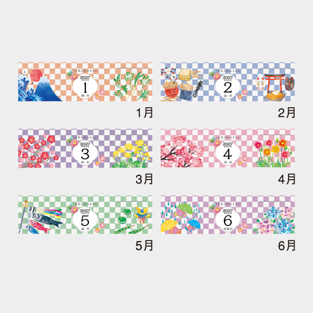 市松模様と四季を感じさせる和のイラストカレンダー