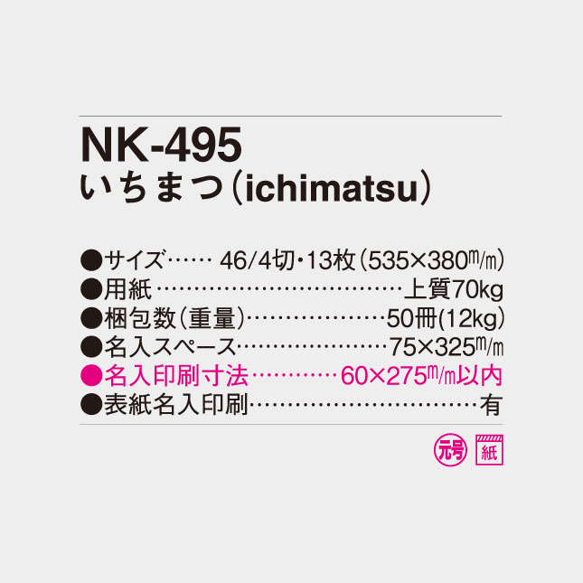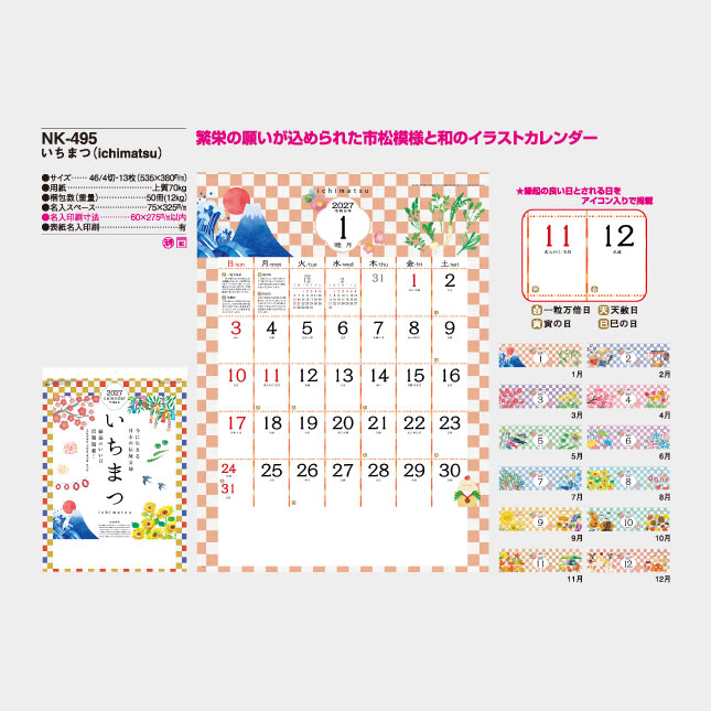 NK-495 いちまつ(ichimatsu)(MM-204;KS-120) 壁掛け名入れカレンダー