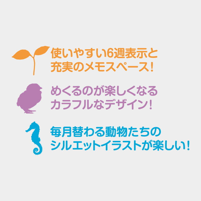 毎月替わる動物たちのシルエットイラストが楽しい!