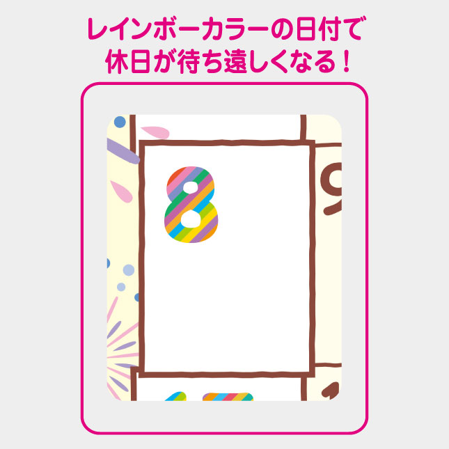 レインボーカラーの日付で休日が待ち遠しくなる!
