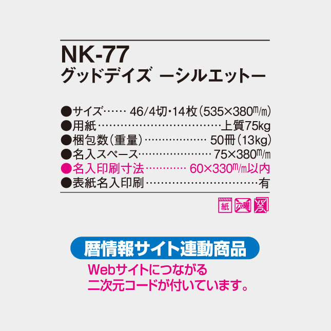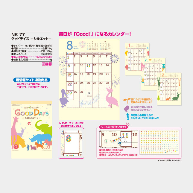 NK-77 グッドデイズ -シルエット- 壁掛け名入れカレンダーの特徴