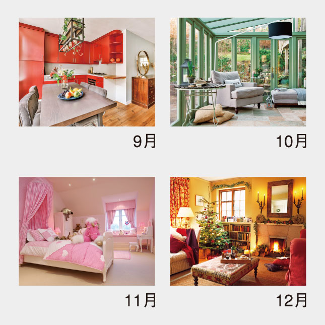 また、月ごとに違った部屋の写真と、その部屋を快適にするための知恵、アイデアを紹介しています。