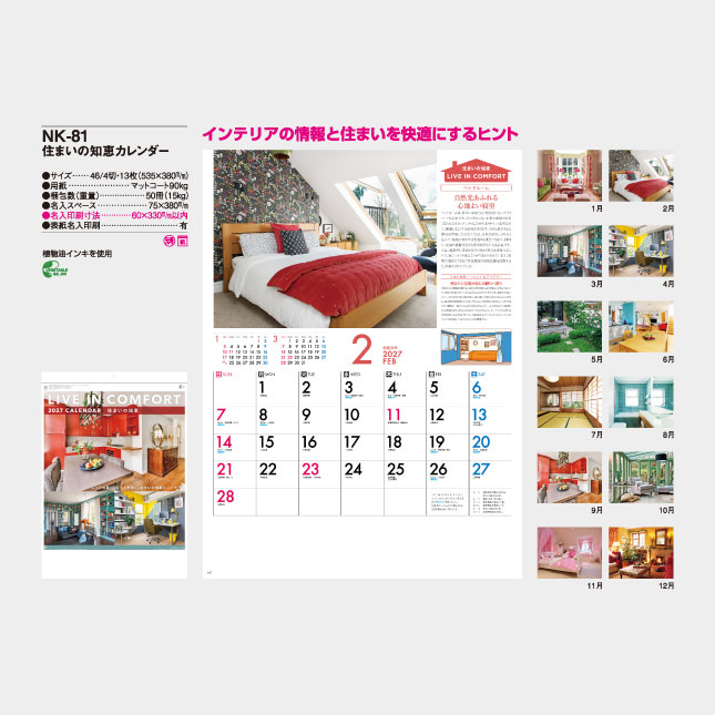 NK-81 住まいの知恵カレンダー。住まいをもっと快適に、素敵にするための情報が満載のカレンダーです。毎月、住まいを快適にするためのアイデアやヒントが掲載されています。また建築吉日も掲載。