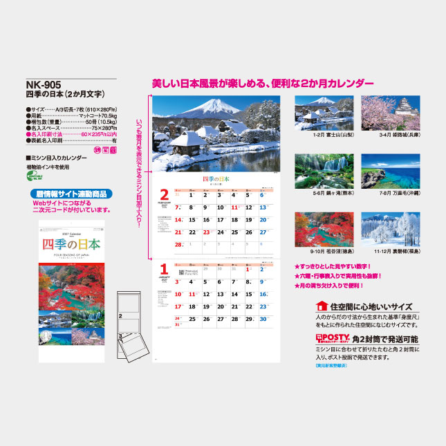 NK-905 四季の日本(2か月文字) 壁掛け名入れカレンダーの特徴