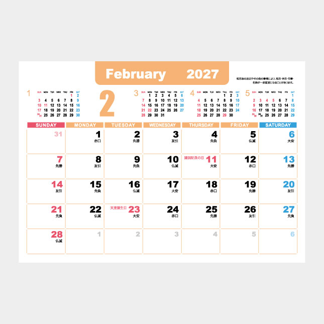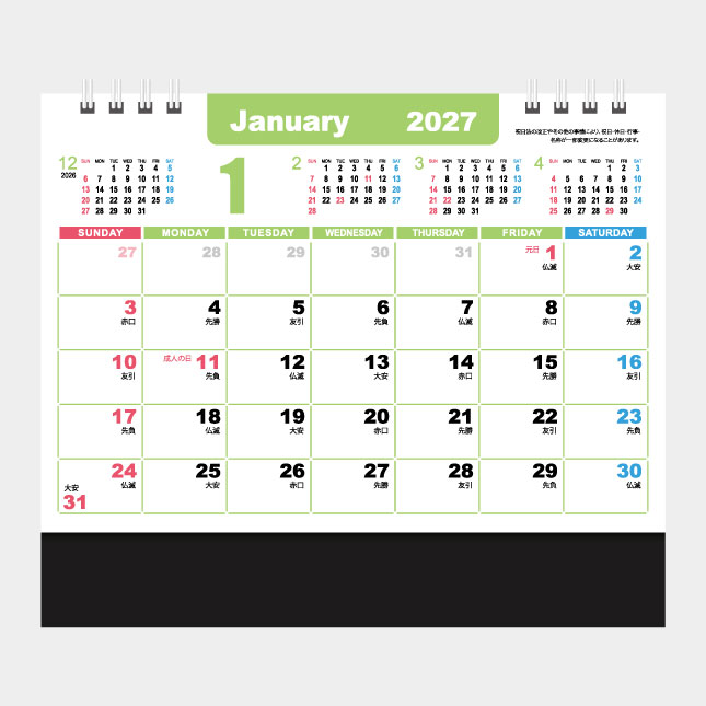 掲載価格は基本色1色です。「名入れ印刷色について」ページをご確認ください。壁掛けの2色以上のカラー刷り・価格表にない冊数についてはお見積をご依頼ください。