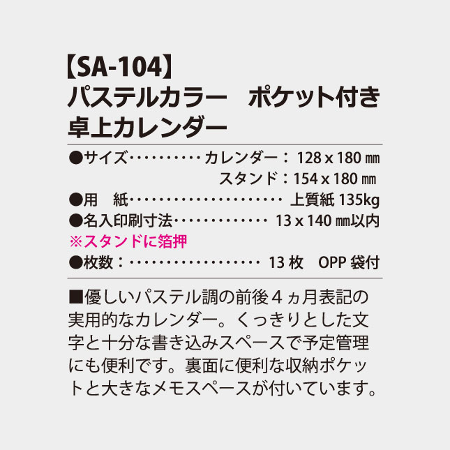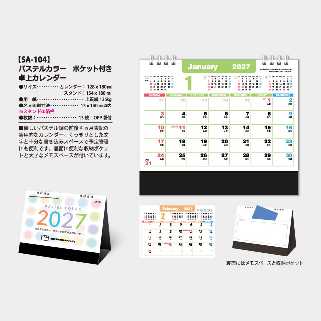 SA-104 卓上 収納ポケット付カレンダーの特徴
