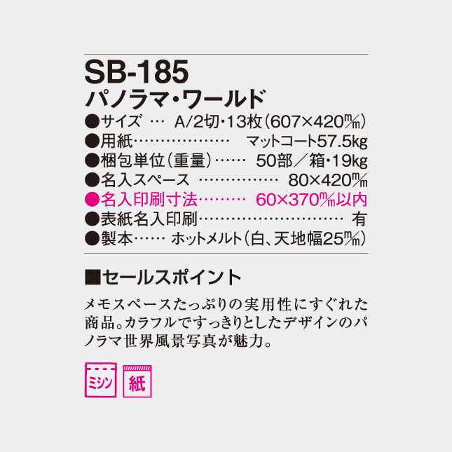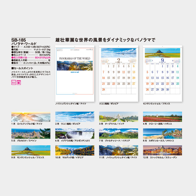 SB-185 パノラマ・ワールド 壁掛け名入れカレンダー