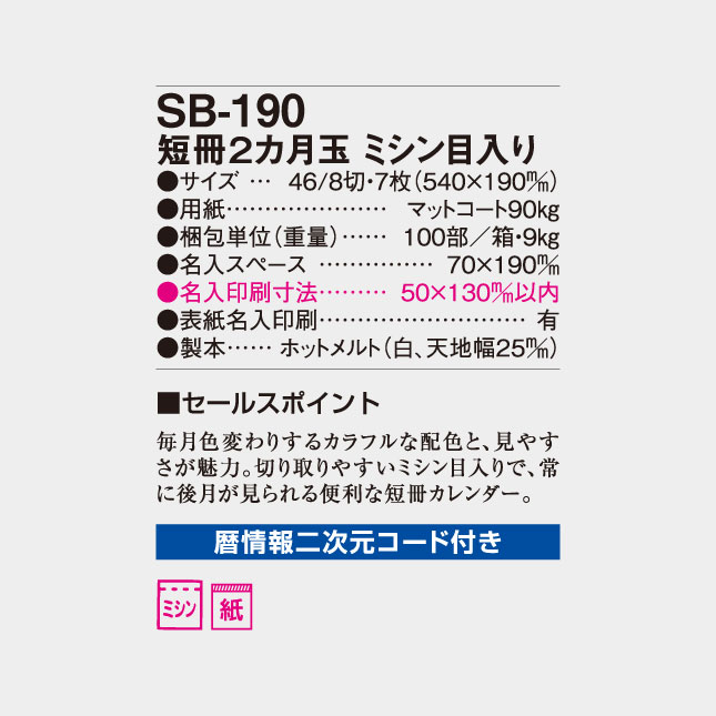 SB-190 短冊2ヵ月玉 ミシン目入り
